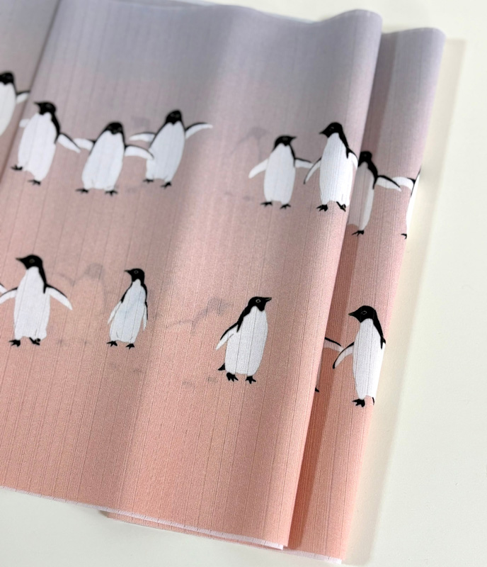 some-pri 絽帯揚ストール「アデリーペンギン」ピンクgd【受注生産品】