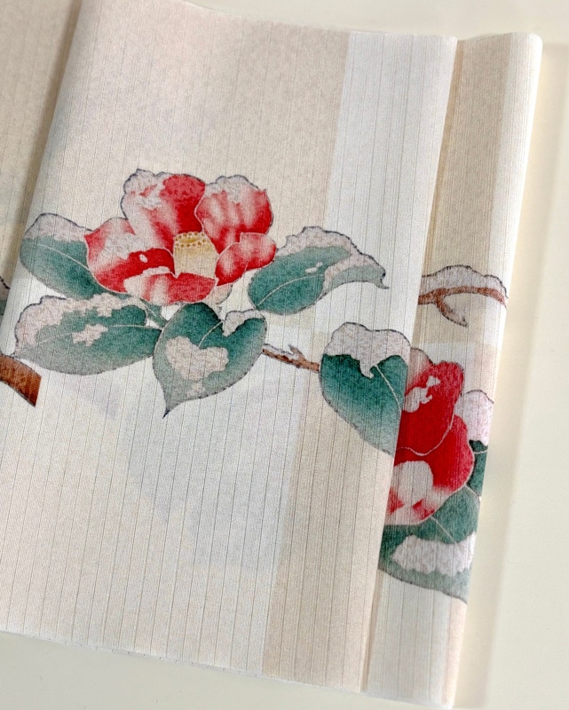 some-pri 絽帯揚ストール「冬椿市松」ベージュ【受注生産品】