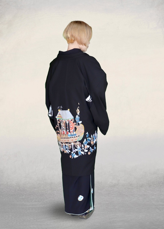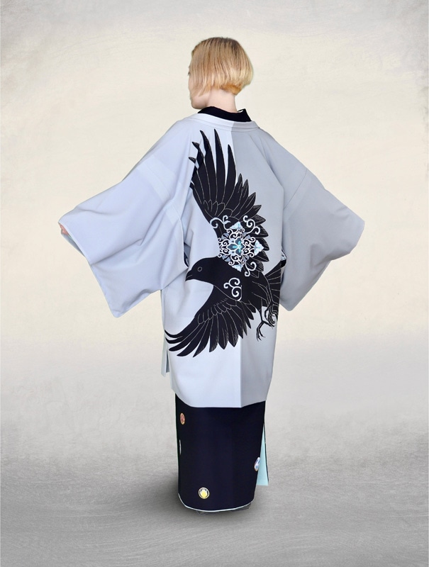 some-pri 袷羽織「大ヤタガラス」グレー片身替わり【受注生産品】