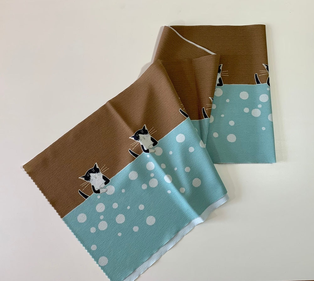 some-pri 帯揚ストール「もの思うネコ」ブラウン【受注生産品】
