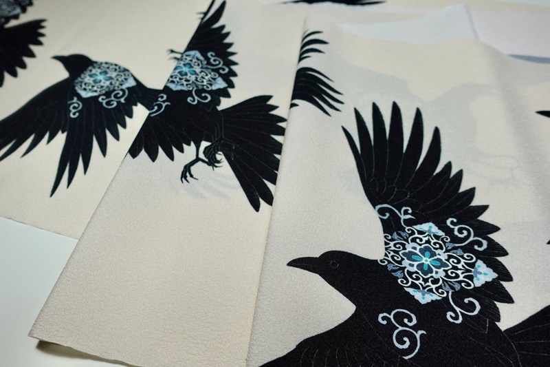 some-pri 単衣着物「大ヤタガラス」グレー片身替わり【受注生産品】