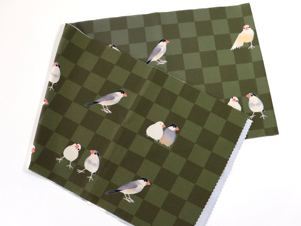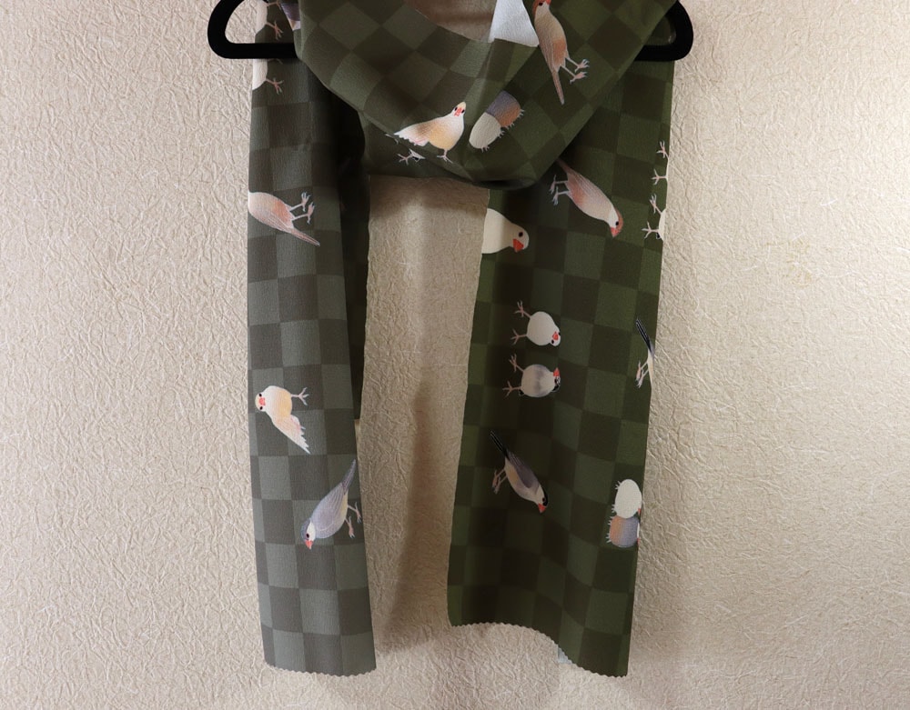 some-pri 帯揚ストール「文鳥図鑑」市松カーキ【受注生産品】