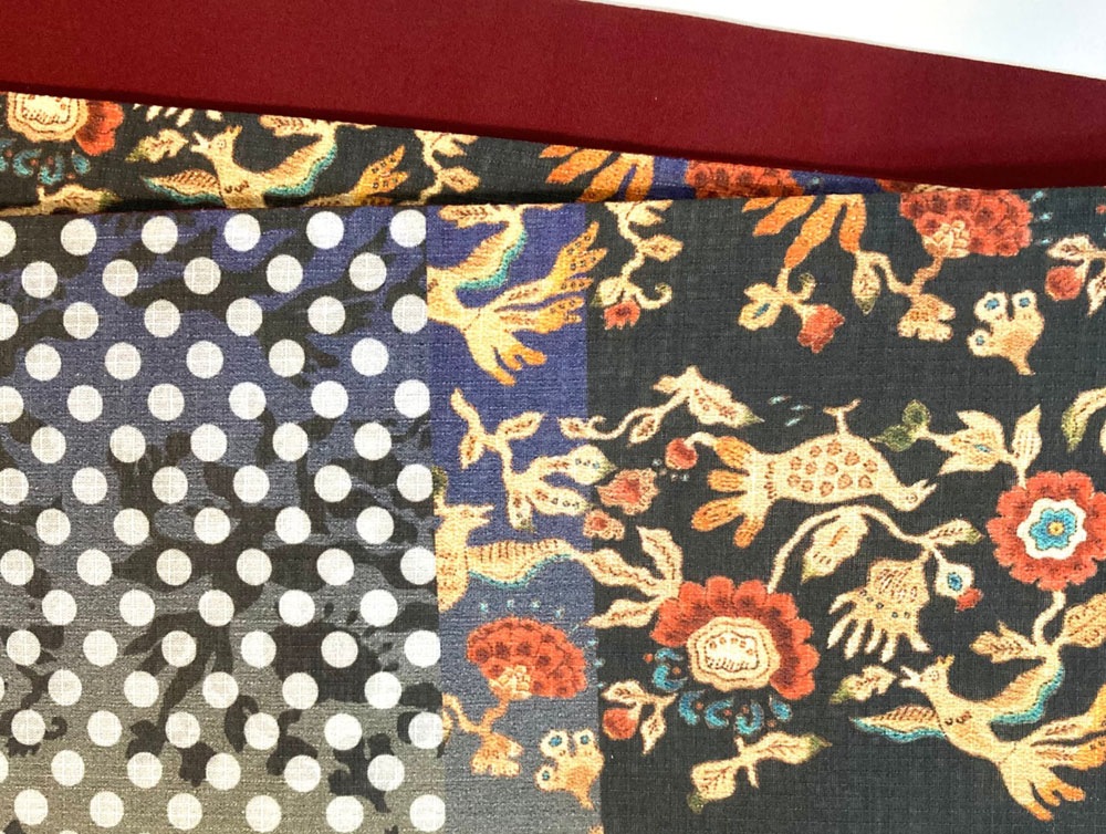 some-pri 綿紅梅半幅帯「更紗」エンジ