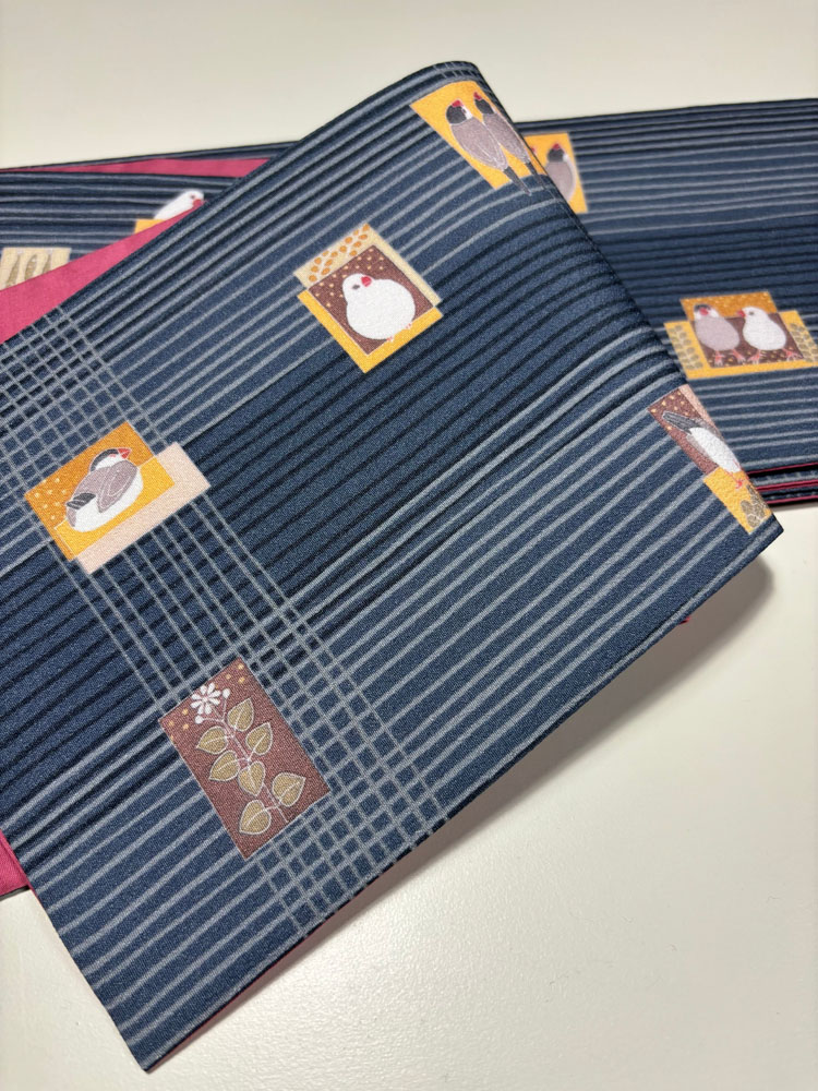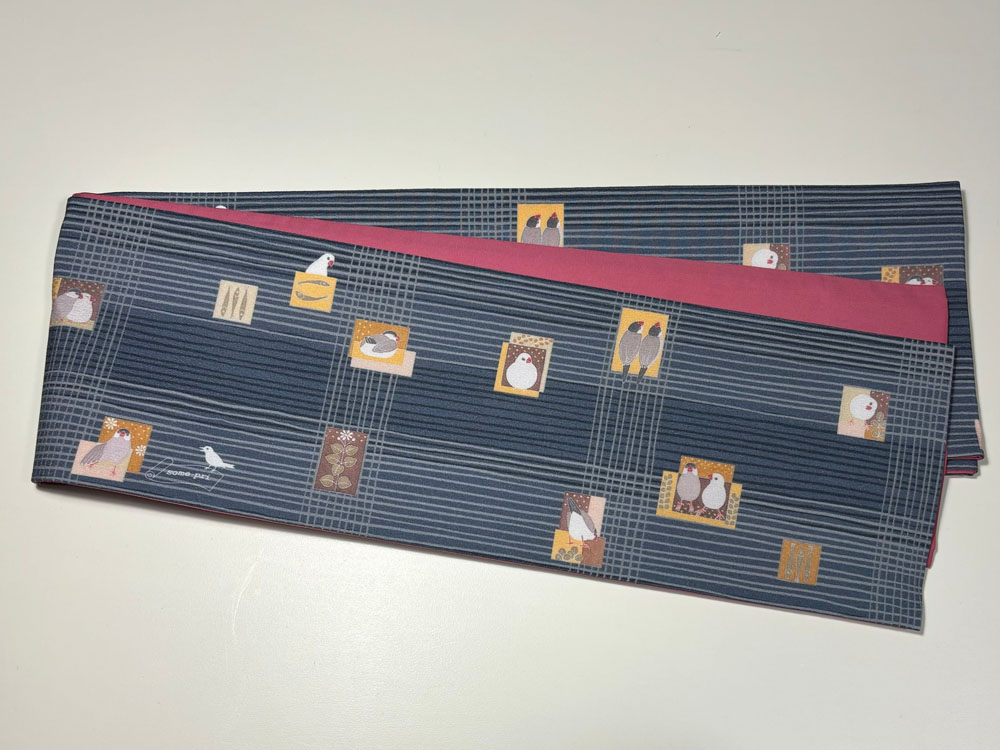 some-pri 半幅帯 「かわいい文鳥」グレー・チェック
