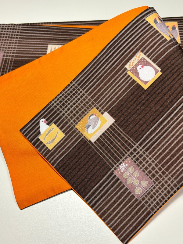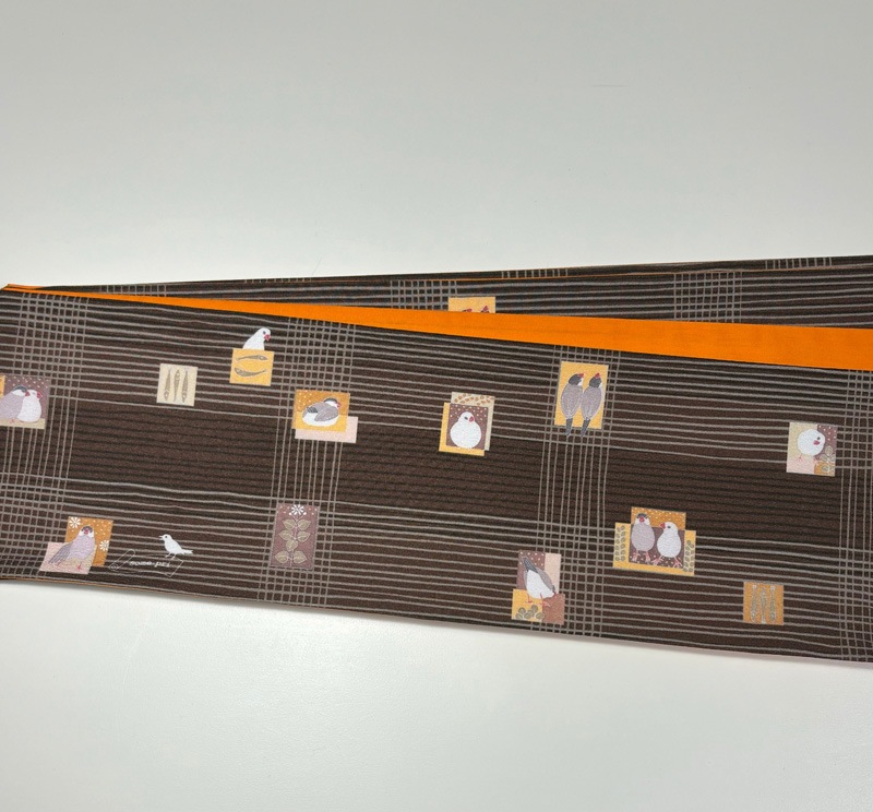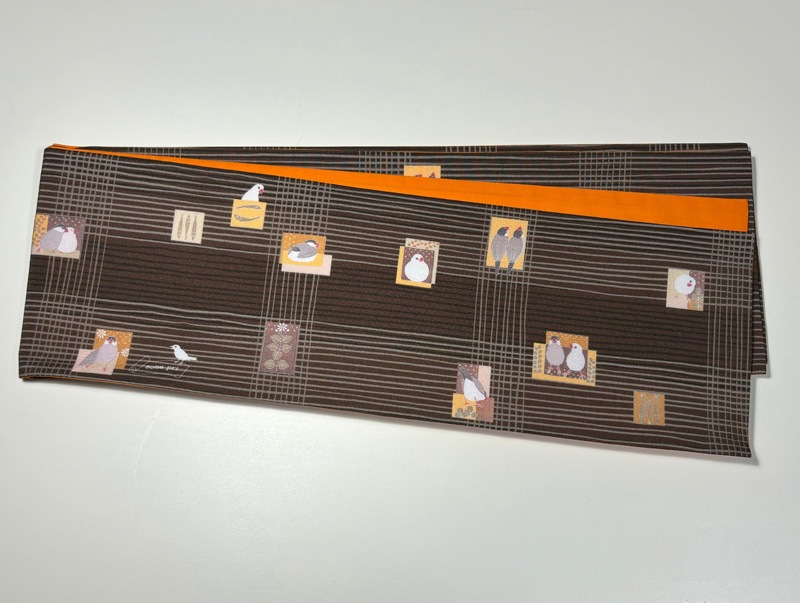 some-pri 半幅帯 「かわいい文鳥」ブラウン・チェック