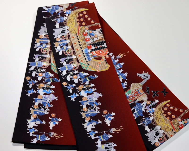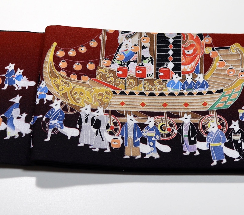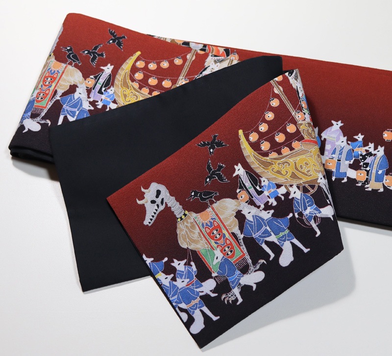もとの友禅の作品は訪問着でしたが、より自由な着こなしを楽しめるよう半幅帯にしてみました。